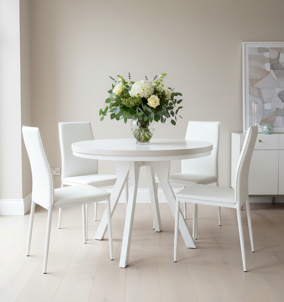 Okrągły Stół 110cm Rozkładany Do 410cm Biała Noga (różne wzory) - Blat 36 mm